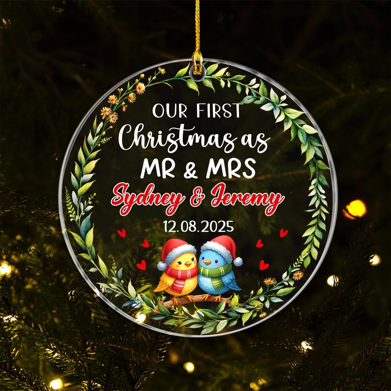 - PERSONALIZED CHRISTMAS ORNAMENTS: Add festive charm to your holiday décor with this round acrylic ornament, polished with smooth edges and crafted for lasting beauty. A thoughtful keepsake for Mr & Mrs, Husband & Wife, Dad, Mom, Grandparents, Married Couple, Newlyweds, Newly Engaged, Bride & Groom To Be, Friends, Coworker, Besties, it makes every holiday more memorable. Click “Customize Now” to personalize your ornament and create a decoration that will be enjoyed for years to come.