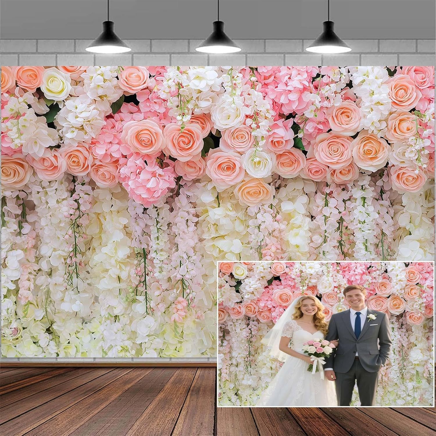 8x6ft Pink Rose Flower Wedding Photography Backdrop Spring Floral Photography Backdrop Valentine's Day Mother's Day Girl Birthday Baby Shower Wedding Bridal Party Banner Photo Booth Props Background